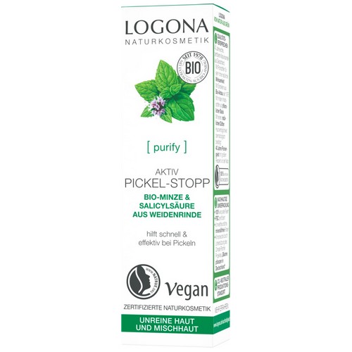 Der LOGONA AKTIV PICKEL-STOPP bietet schnelle Hilfe bei Pickeln. Das klare Gel mit Bio-Minze und natürlicher Salicylsäure aus der Weidenrinde wirkt antibakteriell und bekämpft gezielt Pickel.