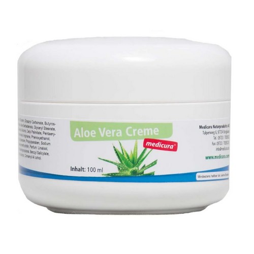 Die Aloe Vera Creme kombiniert die wohltuenden Eigenschaften der Aloe Vera mit Komponenten wie Sheabutter, Harnstoff und Hamamelis-Extrakt, um die Haut intensiv zu pflegen und mit Feuchtigkeit zu versorgen.