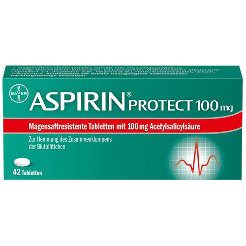 Aspirin protect 100 mg hemmt u. a. das Zusammenhaften und Verklumpen von Blutplättchen (Thrombozyten) und beugt dadurch der Entstehung von Blutgerinnseln (Thromben) vor (Thrombozytenaggregationshemmung).
