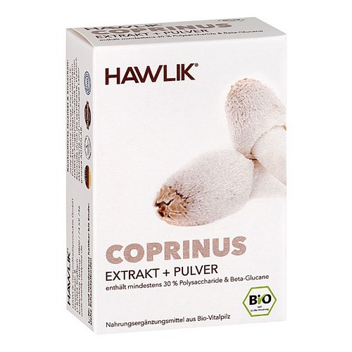 HAWLIK Bio Coprinus Extrakt und Pulver Kapseln enthalten wertvolles Vitamin C.