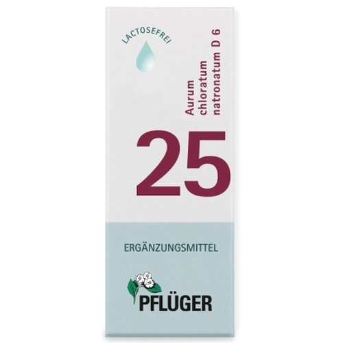Biochemie Pflüger® Nr. 25 Aurum chloratum natronatum D 6 Dil. ist ein biochemisches Ergänzungsmittel. Registriertes homöopathisches Arzneimittel, daher ohne Angabe einer therapeutischen Indikation.