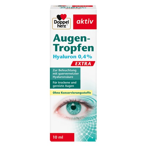 Doppelherz Augen-Tropfen Hyaluron 0,4 % Extra sind eine sterile Lösung ohne Konservierungsstoffe.