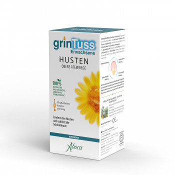 Grintuss Hustensaft wird für die Behandlung von Husten verwendet, welcher durch Reizungen der Schleimhäute der oberen Atemwege entsteht. Der Hustensaft schützt die Schleimhäute und beruhigt den Husten. Der Hustensaft für Erwachsene auf Basis von Honig und dem pflanzlichen Molekülkomplex Poliresin überzeugt mit natürlichen Inhaltsstoffen. Grintuss Hustensaft erhalten Sie rezeptfrei in Ihrer Apotheke.