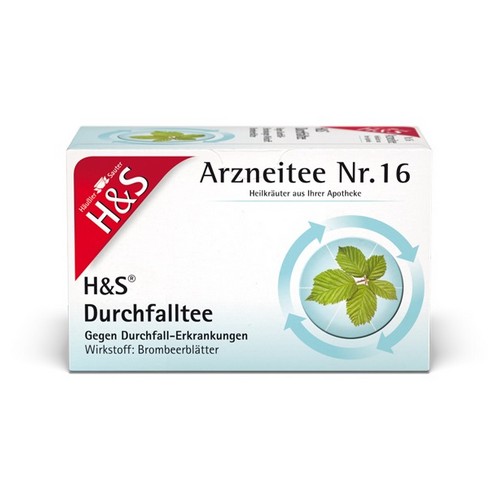 H&S Durchfalltee. Wirkstoff: Brombeerblätter. Anwendungsgebiete: Unspezifische, akute Durchfallerkrankungen. Zu Risiken und Nebenwirkungen lesen Sie die Packungsbeilage oder fragen Sie Ihren Arzt oder Apotheker. H&S Tee-Gesellschaft mbH & Co. · Heidachstr. 62 · D-88079 Kressbronn/Bodensee.