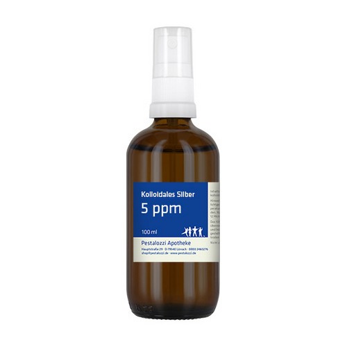 Das kolloidale Silber 5 ppm wird mit hochreinem destillierten Wasser unter qualifizierten Laborbedingungen frisch hergestellt und in einer dunklen Glasflasche geliefert. Die Herstellung erfolgt in der Apotheke unter überwachten Laborbedingungen. Das kolloidale Silber wird auf elektrolytischem Wege mit Hilfe eines entsprechenden Generators hergestellt. Dabei werden aus 99,99% reinem Silber kleinste Partikel gebildet und in destilliertem Wasser verteilt. Wir arbeiten dabei ohne Einsatz von Zusatzstoffen. Bitte beachten Sie: Kolloidales Silber ist kein Arzneimittel und daher auch ohne Angabe einer Indikation. Aus rechtlichen Gründen bieten wir daher das kolloidale Silber nur für technische Zwecke an. Nicht zum Einnehmen.