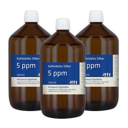 3 x 1000 ml "Kolloidales Silber - Pestalozzi Apotheke" in lichthemmender Apothekerbraunglasflasche