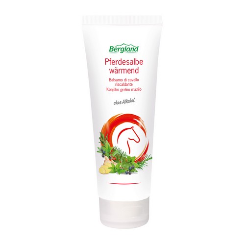 Die Wirkstoffe der 'Pferdesalbe wärmend' sorgen für eine lang anhaltende, gleichmäßige Erwärmung der Haut. Der enthaltene Ingwer-Extrakt regt die Wärmerezeptoren an, ein wohltuendes Wärmegefühl breitet sich aus. Rosmarin-, Wacholderbeeren- und Fichtennadel-Öl fördernd die Hautdurchblutung. Verspannungen werden günstig beeinflusst. Das Gel duftet anregend nach frischen Kräutern. Aloe Vera versorgt die Haut mit Feuchtigkeit.