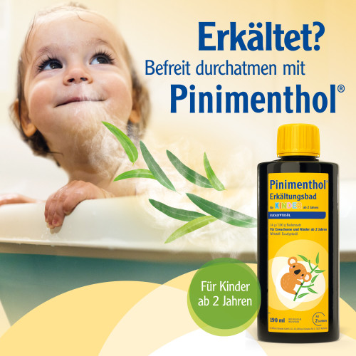Für Kinder ab 2 Jahren wurde ein besonders mildes Pinimenthol® Erkältungsbad mit Eucalyptusöl entwickelt, aber ohne die Wirkstoffe Campher und Menthol.