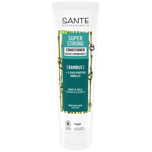 Der Super Strong Conditioner enthält eine hochwirksame Pflegeformel aus Bio-Bambus Extrakt und 3-Fach Protein Komplex, die das Haar kräftigt und Haarbruch reduziert. Für schwungvolles, gesund aussehendes Haar bis in die Spitzen ohne zu beschweren ohne zu beschweren. Der 3-Fach Protein Komplex stärkt, pflegt & schützt das Haar von der Wurzel bis in die Spitzen. Der hydratisierende Pflege-Komplex füllt & baut das Haar auf, für eine natürlich kraftvolle Haarstruktur. Die Verträglichkeit ist dermatologisch getestet.