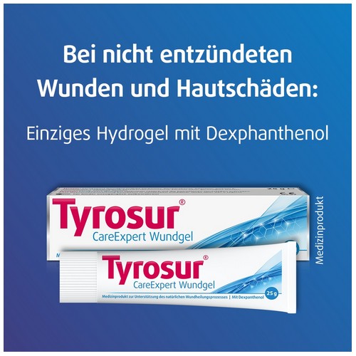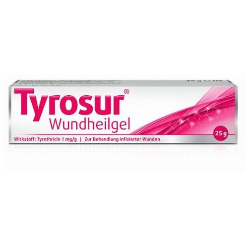 * Tyrosur® Wundheilgel/Wundheilpuder ist ein Wundbehandlungsmittel. Zur lindernden Behandlung von kleinflächigen, oberflächlichen, wenig nässenden Wunden mit bakterieller Superinfektion mit Tyrothricin-empfindlichen Erregern wie z. B. Riss-, Kratz-, Schürfwunden.