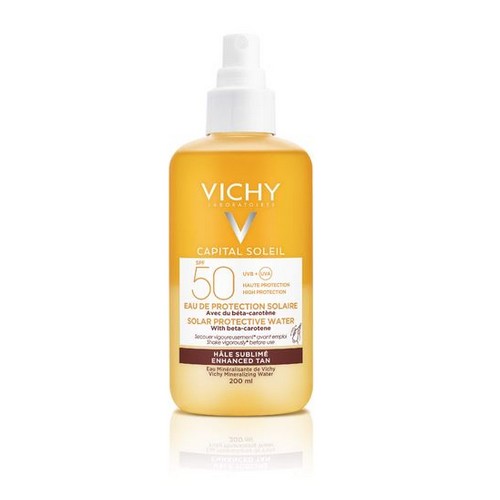 Das Bräunungsintensivierende Sonnenspray LSF 30 von Vichy bietet einen hohen Schutz vor UV-Strahlen - ohne zu kleben und weiße Rückstände auf der Haut zu hinterlassen. Die wässrige Textur ist mit Beta-Carotin angereichert, um einen ebenmäßigeren Teint sowie einen besseren Bräunungsgrad der Haut zu erhalten.