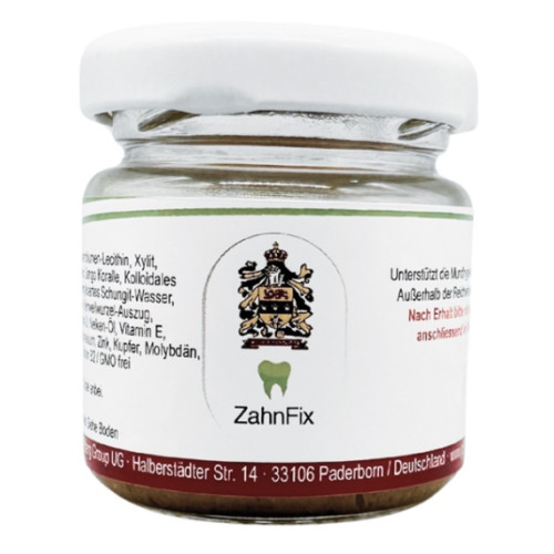 ZahnFix kann sicher geschluckt werden, aber Kinder unter 3 Jahren sollten beaufsichtigt werden, da es nicht zum Verzehr gedacht ist. Bei akuten Schmerzen oder starken Zahnschäden kann es öfter und direkt auf den betroffenen Bereich aufgetragen werden. Kein Wasser verwenden, damit Mineralstoffe über Nacht einwirken können. Haltbarkeit: 3 Monate nach dem Öffnen. Nach der Lieferung bitte mit dem Spatel umrühren und dann im Kühlschrank aufbewahren. Den Spatel nach jeder Benutzung unbedingt gründlich reinigen.